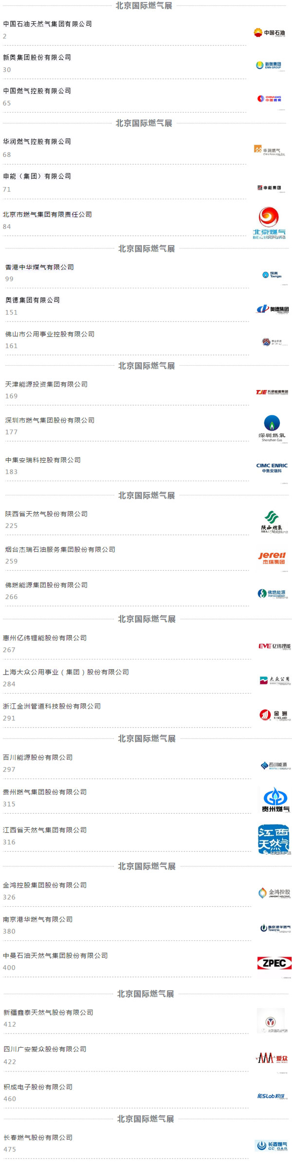 燃氣篇—2020中國能源(集團)500強出爐 這些企業參展國際燃氣展